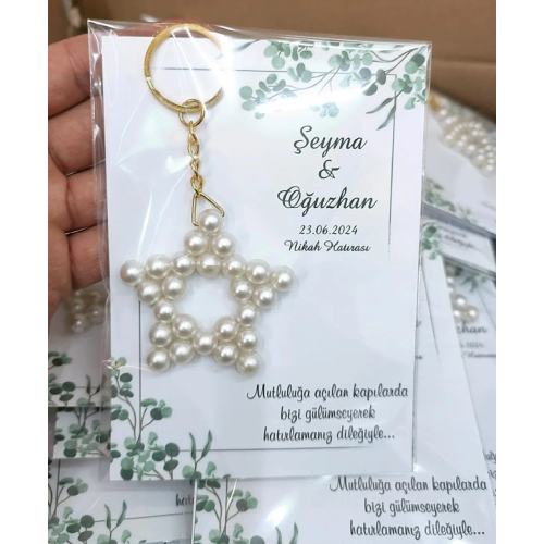 KART VE JELATİNLİ İNCİLİ YILDIZ ANAHTARLIK