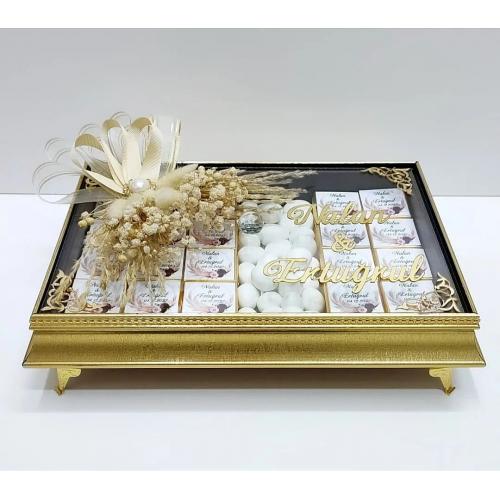 DİKDÖRTGEN CAM AHŞAP KUTU ÇİÇEK SÜSLEMELİ KIZ İSTEME ÇİKOLATASI