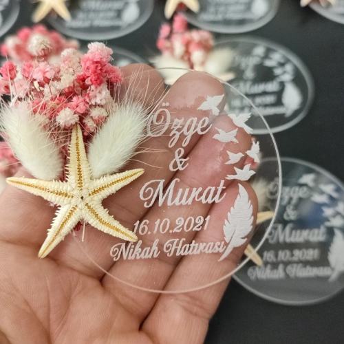 DOĞAL CİPSO ÇİÇEK SÜSLEMELİ DENİZ YILDIZLI ŞEFFAF MAGNET