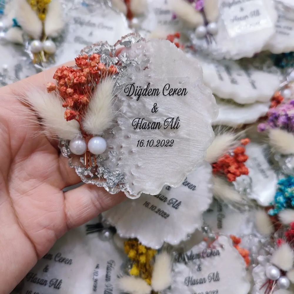 TURUNCU DOĞAL ÇİÇEKLİ SÜSLEMELİ YUVARLAK EPOKSİ MAGNET