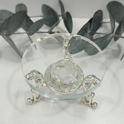 Gümüş Metal Ayaklı Yuvarlak Cam Yüzük Yükselticisi