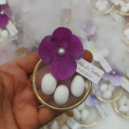 ISLAK ORTANCA ÇİÇEK SÜSLEMELİ HALKA NİKAH ŞEKERİ MAGNET