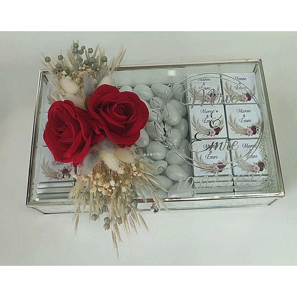 METAL KUTU ÇİÇEK SÜSLEMELİ KIZ İSTEME ÇİKOLATASI