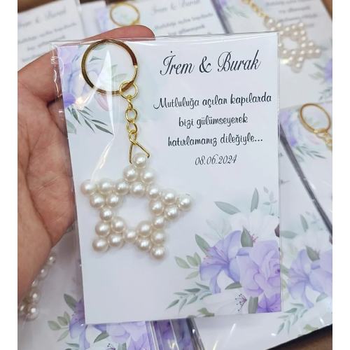 KART VE JELATİNLİ İNCİLİ YILDIZ ANAHTARLIK