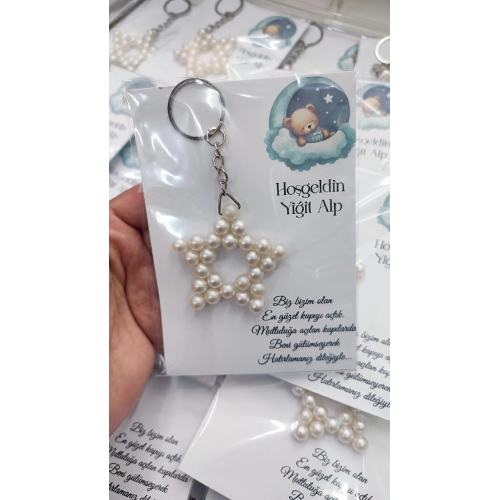 KART VE JELATİNLİ İNCİLİ YILDIZ ANAHTARLIK