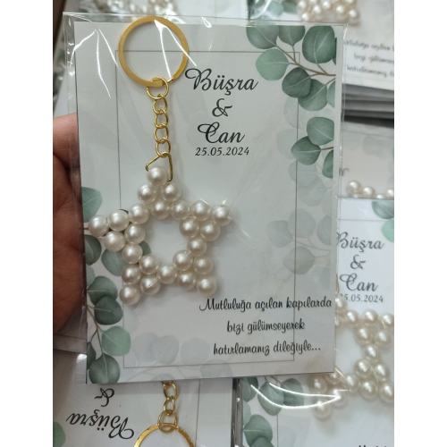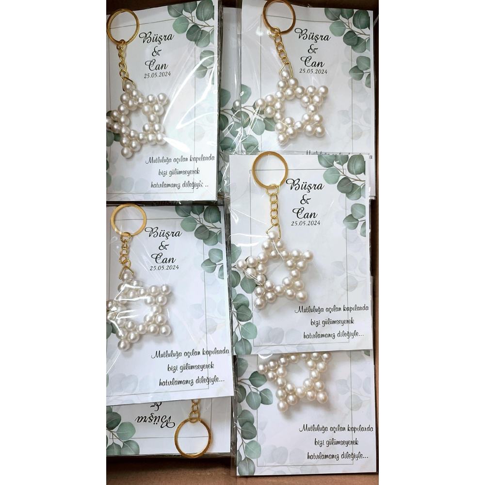 KART VE JELATİNLİ İNCİLİ YILDIZ ANAHTARLIK