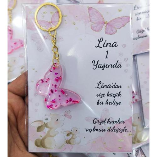 KART VE JELATİNLİ KELEBEK EPOKSİ ANAHTARLIK