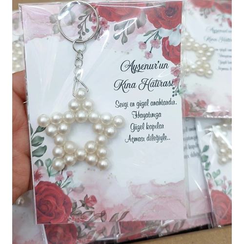 KART VE JELATİNLİ İNCİLİ YILDIZ ANAHTARLIK