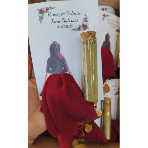 KARTLI TÜP CAM ŞİŞE İÇİNDE KINA VE HALAY MENDİLİ