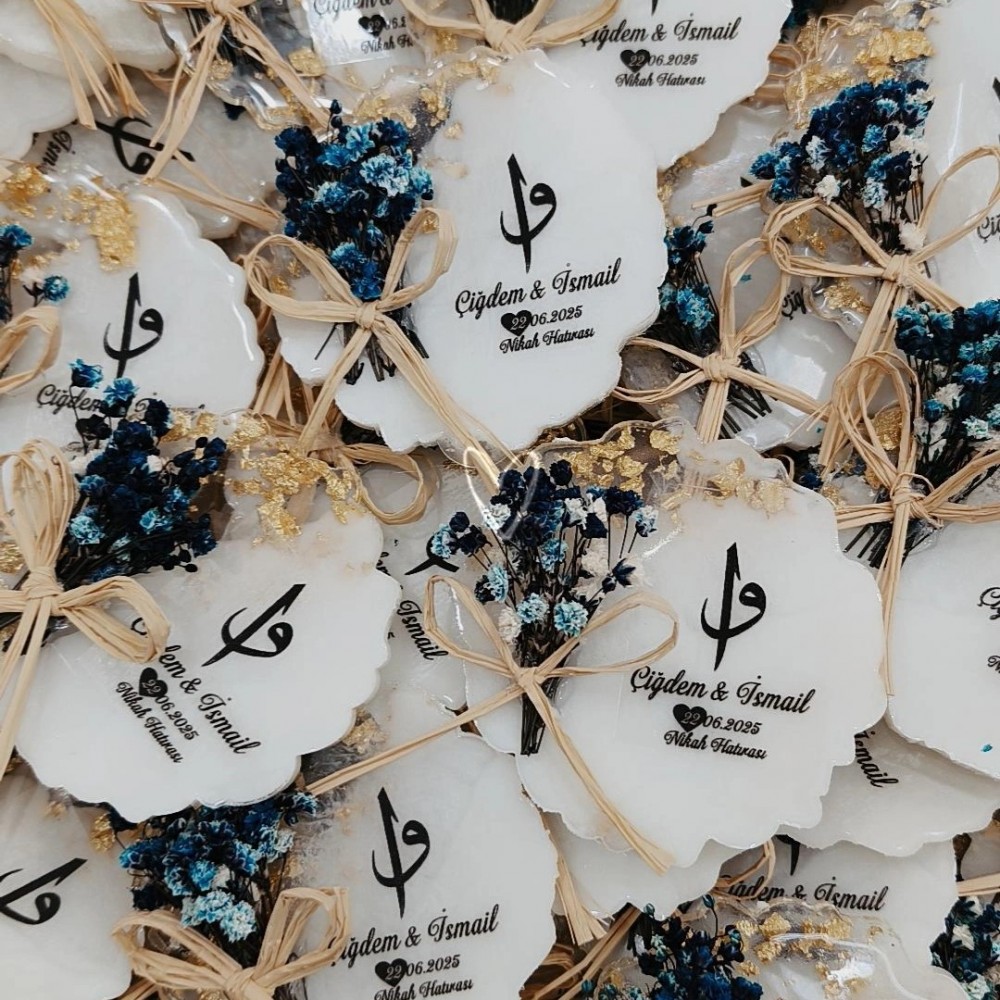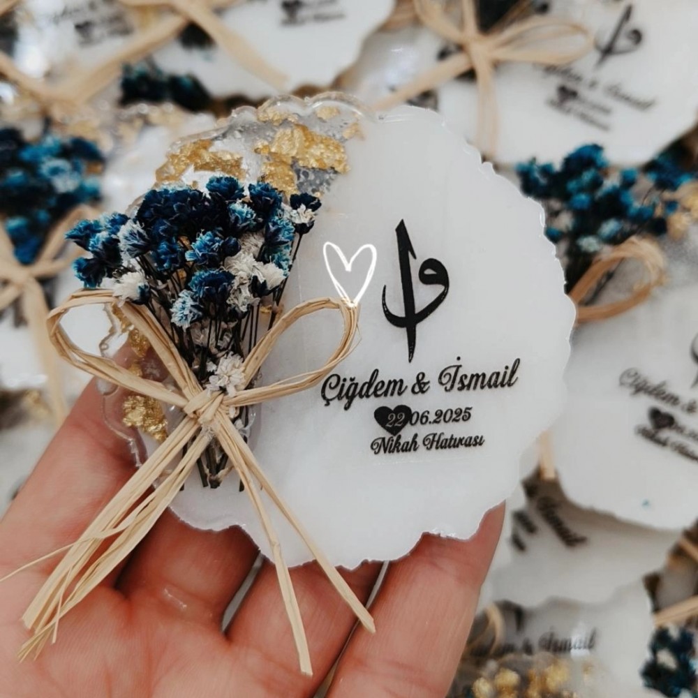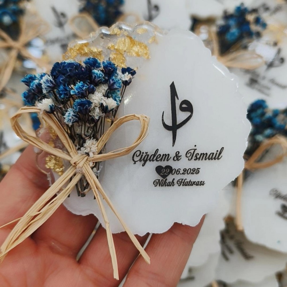 LACİVERT DOĞAL ÇİÇEK SÜSLEMELİ YUVARLAK EPOKSİ MAGNET