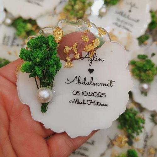 YEŞİL DOĞAL CİPSO ÇİÇEK SÜSLEMELİ YUVARLAK EPOKSİ MAGNET